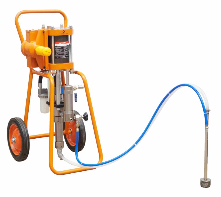 1使用前應首先檢查噴涂機中各螺栓、螺母、各管路接頭、包括吸入系統的聯結螺母和喉箍是否擰緊。仔細了解各氣路閘閥的啟閉方向及調壓閥、放泄閥的旋向。(調壓閥手輪順時針旋大,反時針旋?。?,配備空壓機不能太小,使用空氣管長度不得超過5m。2將涂料吸入管及放泄閥均插入稀料桶,接通氣源,根據涂料種類,調節進氣壓力,為保證使用安全,最高進氣壓力不準超過0.6Mpa;而且,只要涂料霧化良好,進氣壓力越低越好。3開啟發泄閥(不開噴槍),此時噴涂機的氣動液壓增壓泵即會連續、穩定地往復運動,待噴涂機涂料液壓系統空載壓力